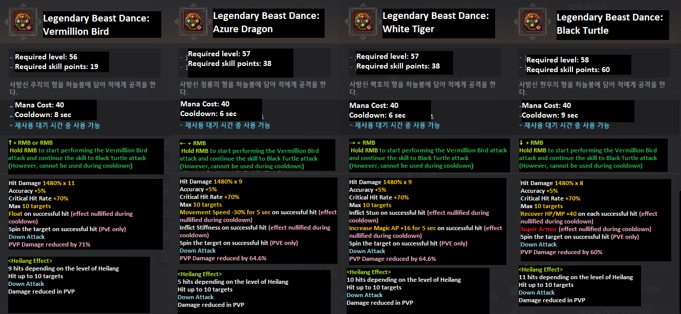 - The skill damage of Spirit Blaze I~IV skills has been increased as follows. (PvP damage is the same as before.)
