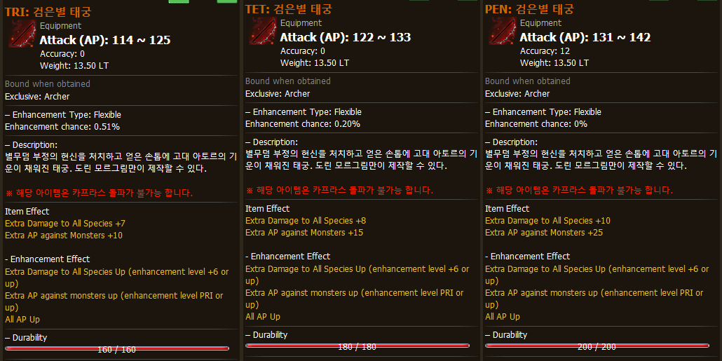 - The stats of the Black Star Awakening Weapon items have been changed as follows.